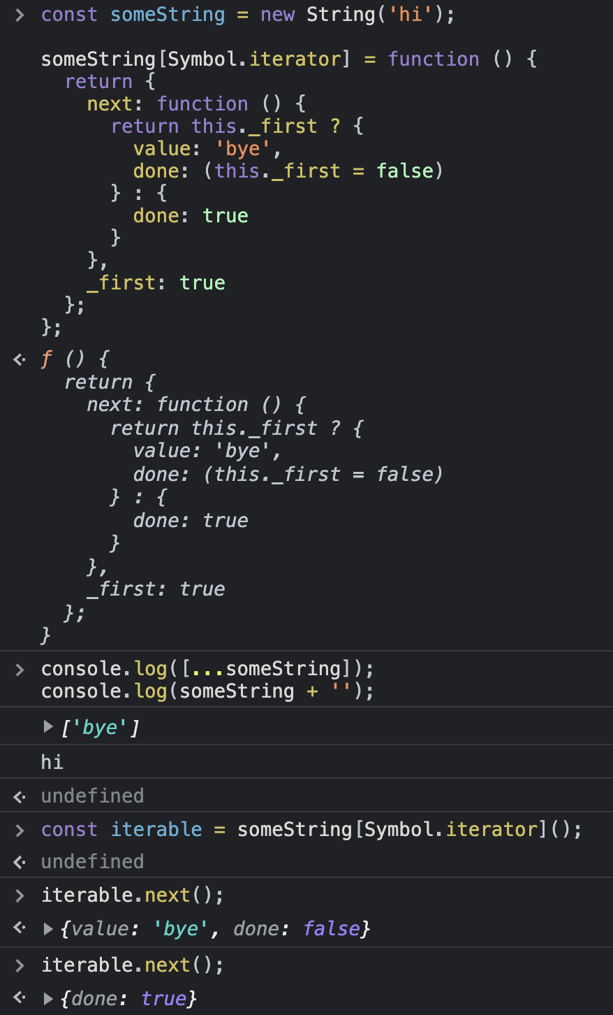 someString[Symbol.iterator] = function () {
